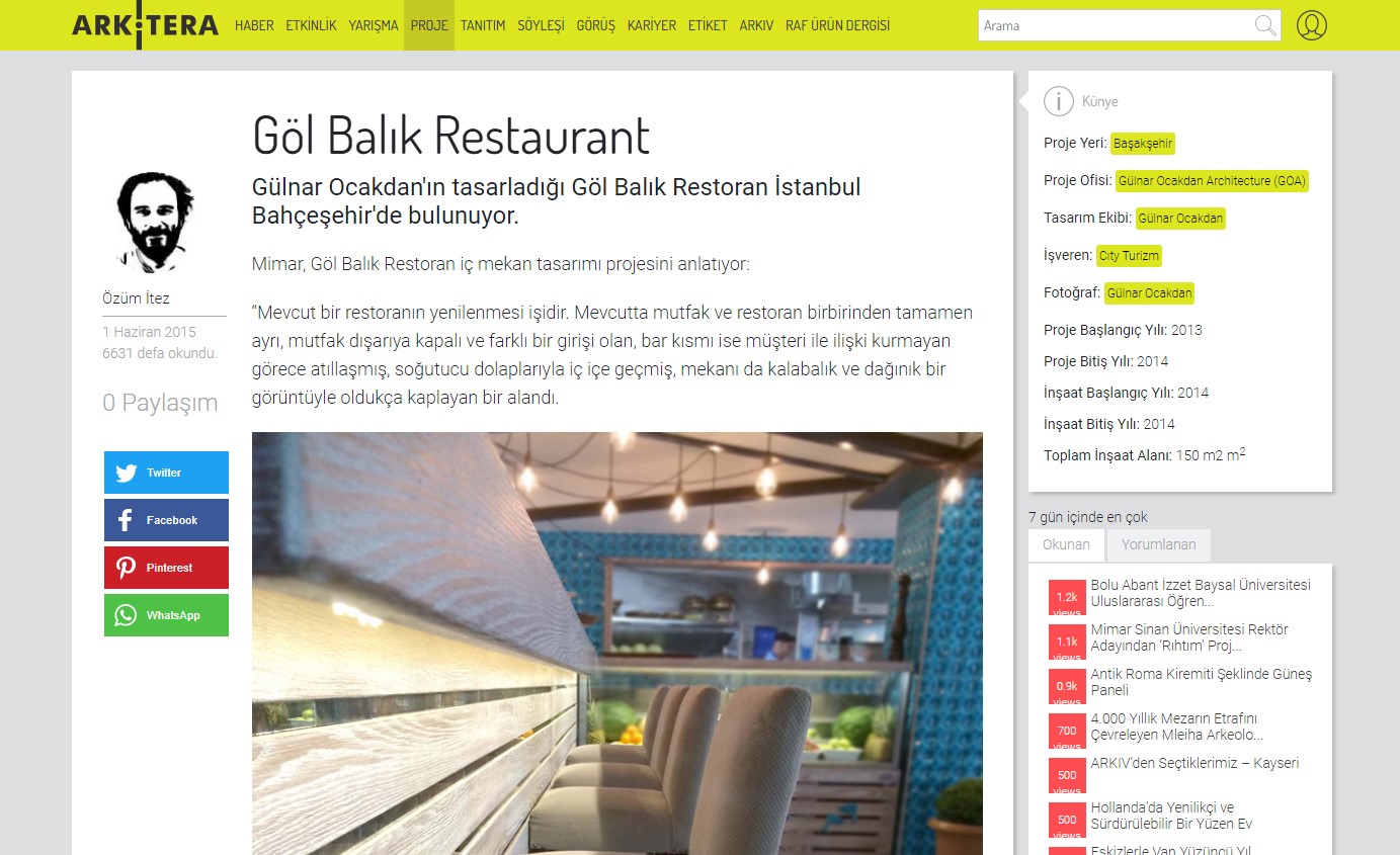 Gol Fish Restaurant, whose project and application we have done, is on the Arkitera…
